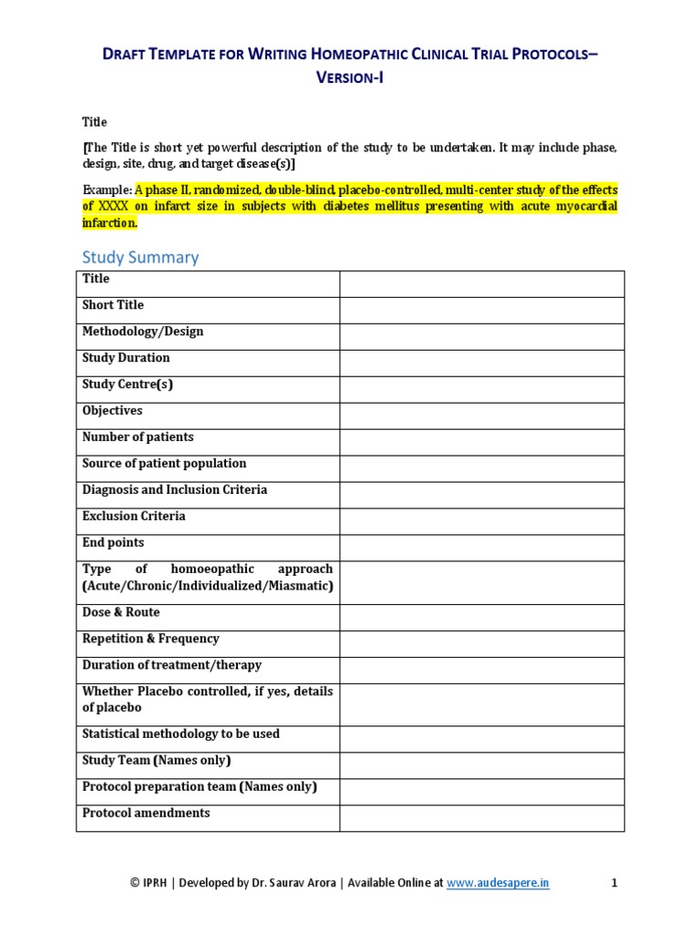 Clinical Trial Protocol Template. Each Investigator participating in the clinical trial and the associated clinical study staff will receive training on the clinical protocol. To download this template, you will need access to SharePoint.