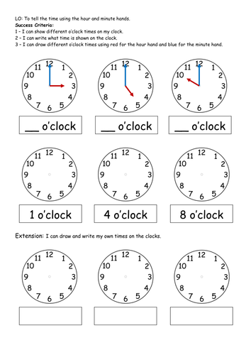 A set of worksheets to use when developing analogue clock ...