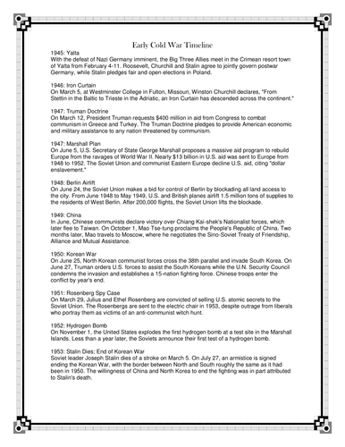Cold War Timeline Assignment (Handout, Teacher Key, Rubric ...