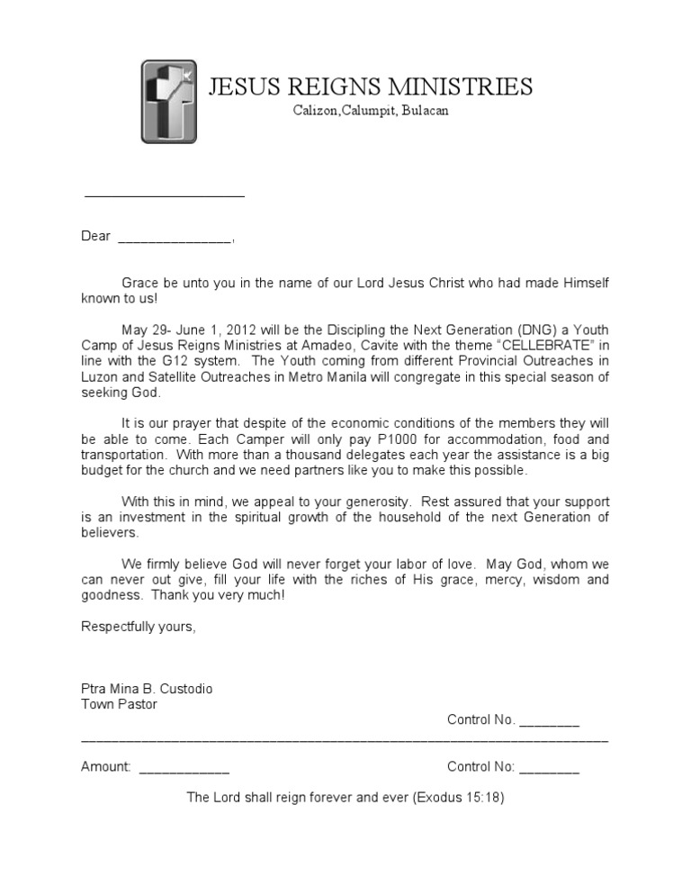 Sample Church Donation Letter | Sample Donation Request ...