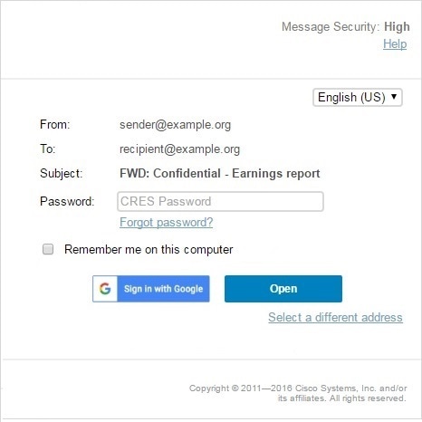 If you receive a password-protected Registered Envelope, you need to set up a free user account with Cisco Registered Envelope Service to open your encrypted message.